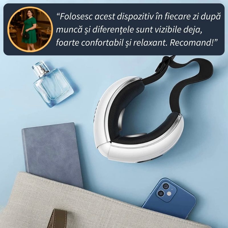 👤 Sorin (din Ilfov): „Un dispozitiv de masaj foarte bun, fata mea îl folosește cel mai des și a spus ca simte diferența după fiecare utilizare. Ea stă foarte mult pe calculatorul din cauza școlii și simte ochii foarte obosițo. Acest dispozitiv a ajutat-o să reducă durerile cap. Recomand!” ★★★★★